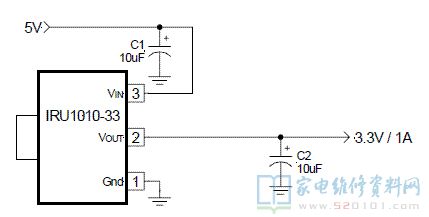 概述:IRU1010-33是一款低压差稳压芯片,稳压电压3.3V,输出电流1A。