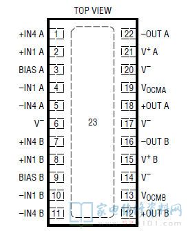 三态 BIAS 引脚用于确定每个放大器的功耗,从而允许在停机、中等功率或满功率之间进行选择。