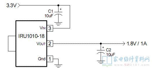 概述:IRU1010-18是一款低压差稳压芯片,稳压电压1.8V,输出电流1A。