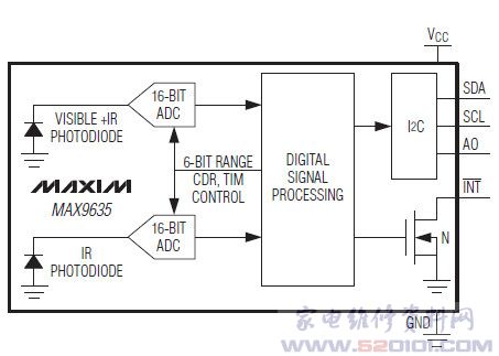 概述:MAX9635提供2mmx2mmx0.6mm、6引脚、透光的UTDFN-Opto-EP无铅封装,工作在-40°C至+85°C扩展级温度范围。能够工作在1.8V电压的光传感器,可通过I?C接口的同一个1.8V电源供电。