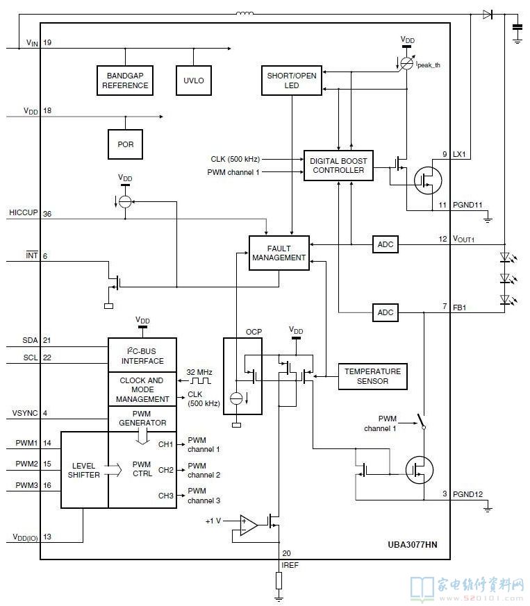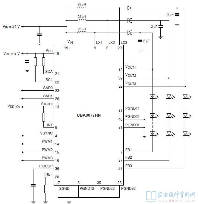 · 由三个独立通道构成,各自分别集成升压转换器和电流源,使应用设计不受LED灯串电压不匹配导致的额外散热的影响