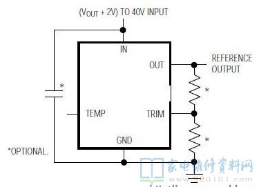 提供TEMP输出,其输出电压正比于管芯温度,所以非常适合于多种温度检测类应用。还提供TRIM输入,可通过电阻分压网络对输出电压进行精细的微调。低温度漂移和低噪声特性使这些器件非常适用于高精度A/D或D/A转换器。