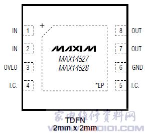 概述:MAX14528提供2mm×2mm、8引脚TDFN无铅封装,工作在-40℃至+85℃扩展级温度范围。