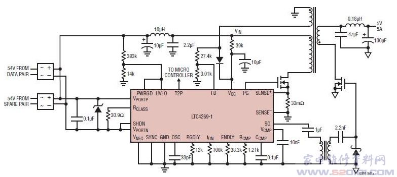 ·面向IEEE802.3atPD的完整25.5W电源接口端口
