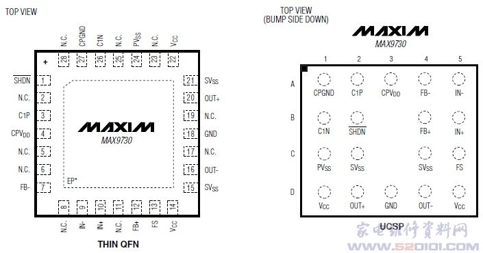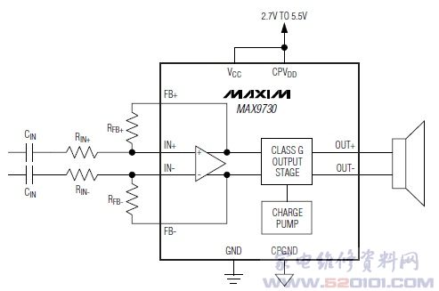 该器件采用全差分输入和输出,具有完整的咔嗒声和噼噗声抑制电路、关断控制电路和软起动电路。MAX9730工作于-40°C至+85°C扩展级温度范围。