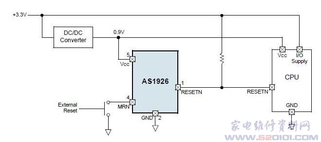 概述:AS1925采用小尺寸、5引脚SOT23封装,适用于-40℃至+85℃的工作环境,工作于+0.55V/0.75V至+1.8V电源电压,仅消耗3.5μA电源电流。用于监测μP和数字系统中的0.9V至1.5V电源,为监测0.9V、1.2V和1.5V供电电源,可提供0.81V至1.425V的多种工厂设置电压门限,容限为5%或10%。提供推挽式高电平有效及低电平有效复位输出。