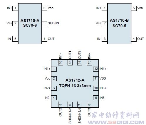 具有高输出驱动能力,同时具备奥地利微电子的低功耗特性,仅需要1.6mA电源电流,关断模式(AS1710B)下电源电流仅为1nA。
