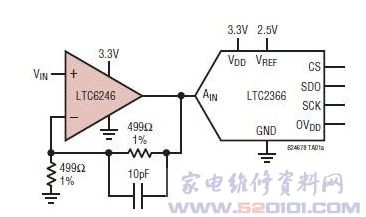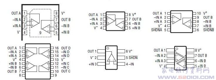 概述:LTC6246采用SOT-236引线单路和MSOP-10双路封装。该器件运用一种节省功率的 SiGe 工艺,实现了 180MHz 增益带宽积和 90V/us 转换率,同时每放大器仅消耗 1mA 最大电源电流。具有轨至轨输入和输出、以及 4.2nV/ÖHz 宽带噪声。输入失调电压最大值规定在 500uV,开环增益为 45V/mV。运用偏置电流消除功能可在大部分输入共模电压范围内实现 350nA 的最大输入偏置电流,从而允许这些产品在很多具有高源阻抗的应用中使用。 LTC6246 系列提供在商用 (0°C 至 70°C)、工业 (-40°C 至 85°C) 和高温 (-40°C 至 125°C) 温度范围内完全规定的多种版本。在采用 SOT-23 6 引线单路和 MSOP-10 双路封装的版本中,停机功能将电流消耗降至 42uA。