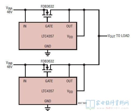 通过采用一个N沟道MOSFET替代一个功率肖特基二极管来降低功耗