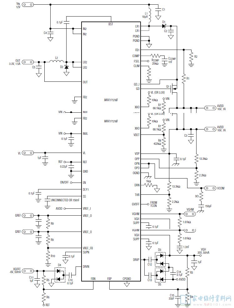 | 15 | BST | 降压稳压器自举电容连接。高端栅极驱动器的电源。在 BST 和 LX2 之间连接一个 0.1FF 陶瓷电容。 |