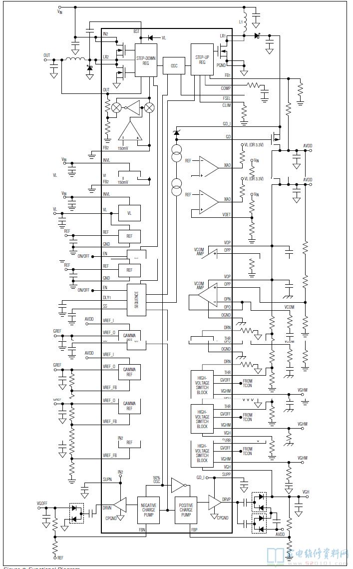 | 47 | VREF_FB | 伽玛参考反馈输入。将 VREF_FB 连接到 VREF_O 和 GND 之间的电阻分压器的中心,以设置伽马参考输出电压。将电阻分压器放置在 VREF_FB 的 5mm 范围内。 |