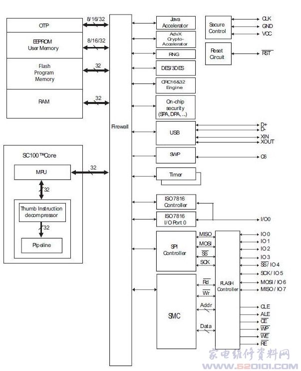 AT91SC192192CT-USB与基于ROM的AT91SC512384RCT完全兼容,还采用了标准的ISO7816智能卡和新推出的单线协议(SWP)接口。