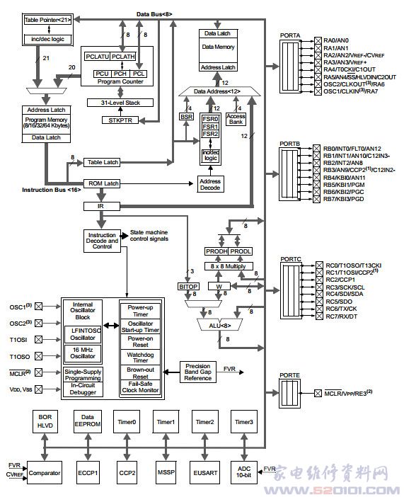 ◆ Timer1振荡器:32kHz、1.8V时<800nA