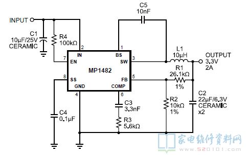 概述:MP1482DS采用8脚封装,此芯片完成12V转5V以及12V或5V转1.26V,是BUCK式压降的DC/DC转换器,采用同步整流方式,最高可输出2A的电流,输入电压范围为4.75V~18V,输出电压范围为0.923V~15V。
