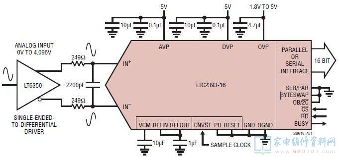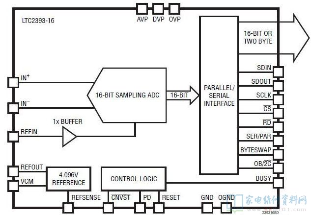 LTC2393-16具有卓越的 AC 性能,从而实现了 94dB SNR 和 105dB THD。DC 性能也同样令人印象深刻,具有 ±2LSB INL (最大值) 和 16 位无漏码分辨率。还具有温度补偿的内部基准,该基准在汽车和工业温度范围内具 0.1% 的生产测试初始准确度和 20ppm/°C (最大值) 的温度系数。 在 1Msps 时消耗 140mW 功率,在不转换时具有将功耗降至 175uW 的停机模式。即使在冗长的空闲周期之后,真正无延迟工作在单次也能实现准确测量,而且没有最低采样率要求。在 1.8V 至 5V 的 I/O 电压范围内,通过串行和并行接口支持 1Msps 采样率。