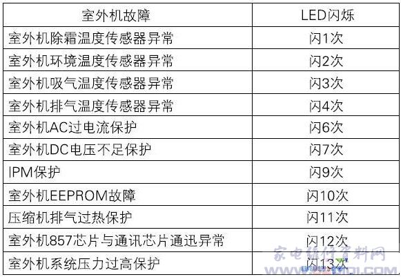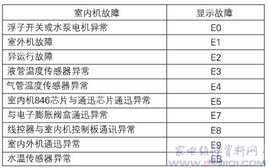 室内机线控器故障显示表