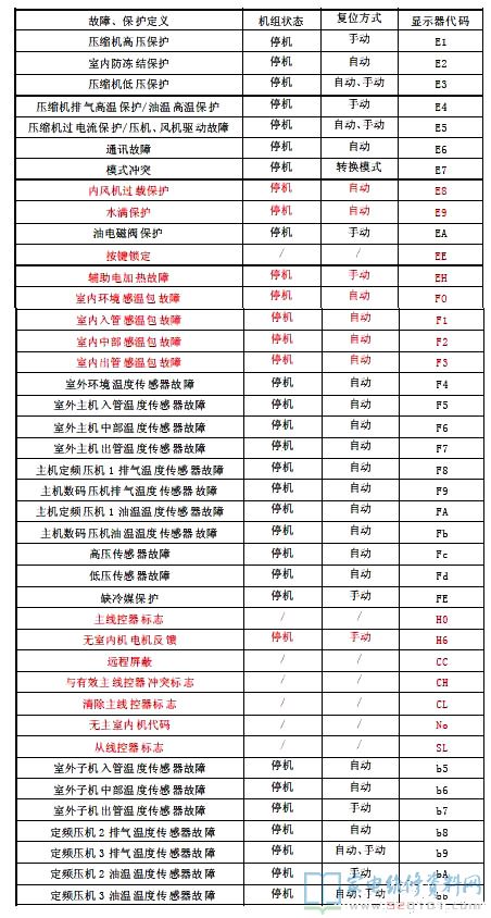 格力数码型多联机空调故障代码