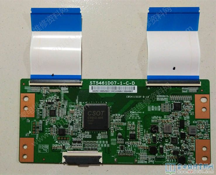 又拆下逻辑板上的左边的排线,插上右边的排线,开机检查逻辑板上HVAA、VAA、VCM电压均正常,我们看屏幕有一半图像右边屏幕显示,说明左边的屏幕有短路故障。